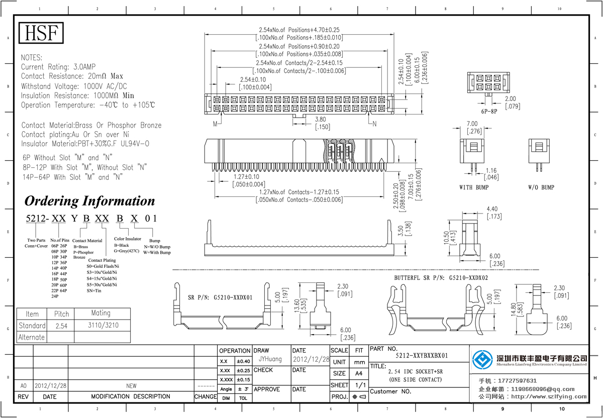 產品分類:IDC插座連接器 產品型號:UL認證 2.54 2*7P 彈片型 青銅 帶凸點 IDC 三件式 技術參數:額定電流:1.0amp電流電阻:20m最大絕緣電阻:1000mmin耐壓:1000V AC /分鐘工作溫度:40﹣℃