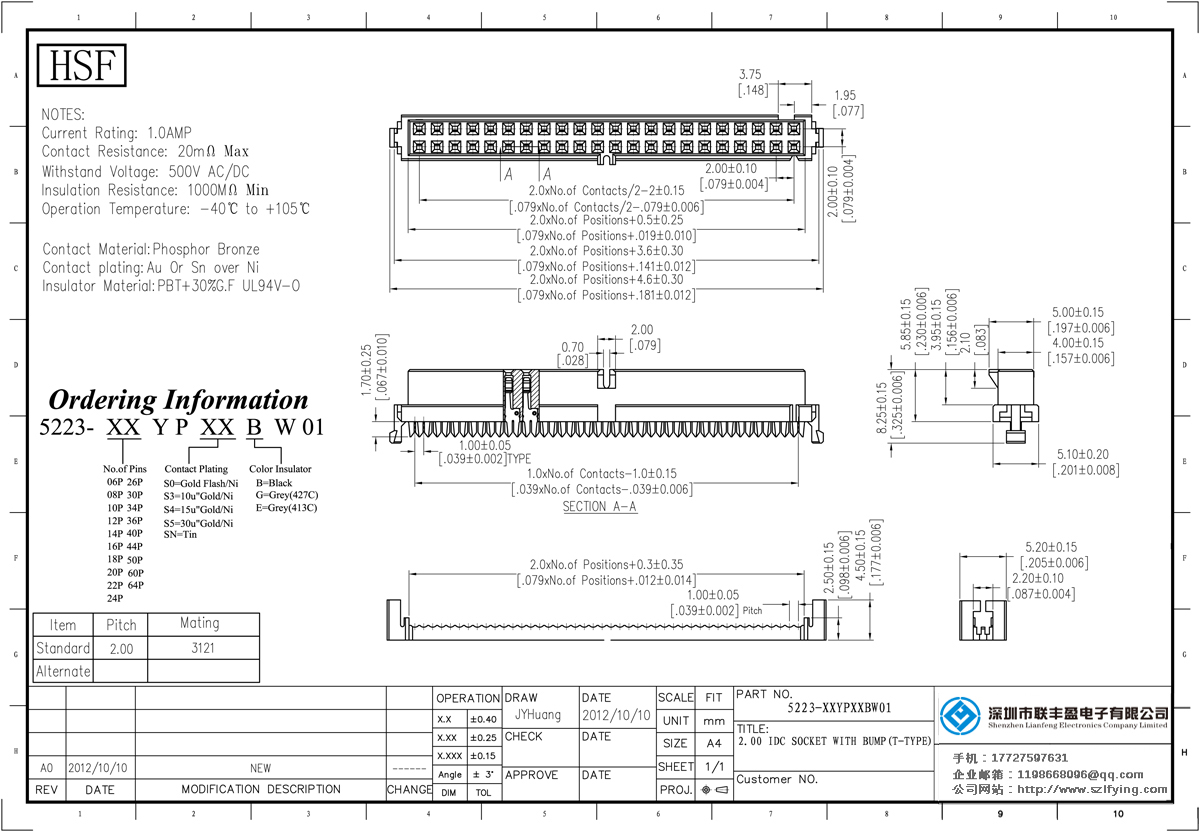 產(chǎn)品分類:IDC插座連接器 產(chǎn)品型號(hào):UL認(rèn)證 IDC插座連接器 聯(lián)豐盈供應(yīng) 技術(shù)參數(shù):額定電流:1.0amp電流電阻:20m最大絕緣電阻:1000mmin耐壓:1000V AC /分鐘工作溫度:40﹣℃+ 105℃接觸材料