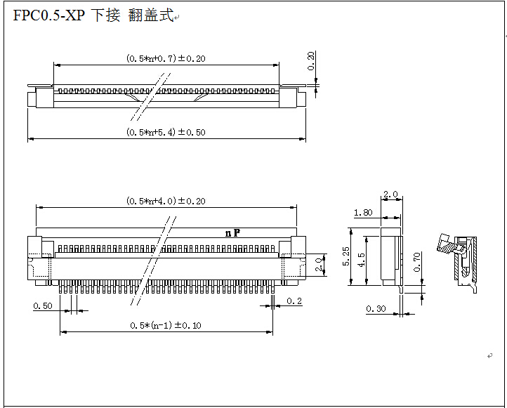 產品類型: FPC連接器 產品類型 FPC0.5-XP 間距 0.5mm 針數 4-60P 額定電流 0.4A 額定電壓 50V 接觸電阻 20 Milliohms Max 絕緣電阻 500 M Min 工作溫度范圍 -25oC+85oC 耐電壓 200V AC r.m.s 金屬材質 黃銅/磷