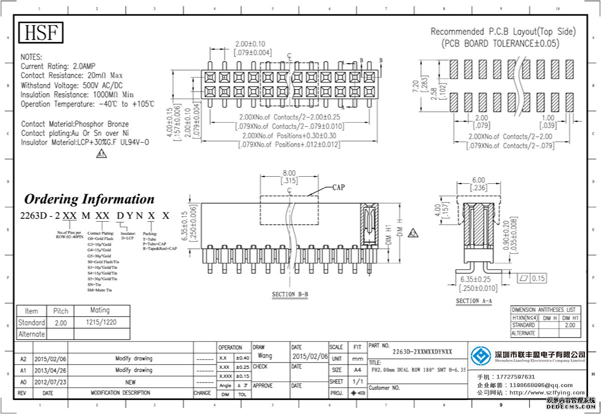 產品分類:排母連接器 產品規格:聯豐盈 2.0MM 雙排加塑膠 180SMT 排母 生產 產品介紹:額定電流:2.0amp電流電阻:20m最大絕緣電阻:1000m民承受電壓:AC 500V /分鐘工作溫度:55﹣℃+ 125℃