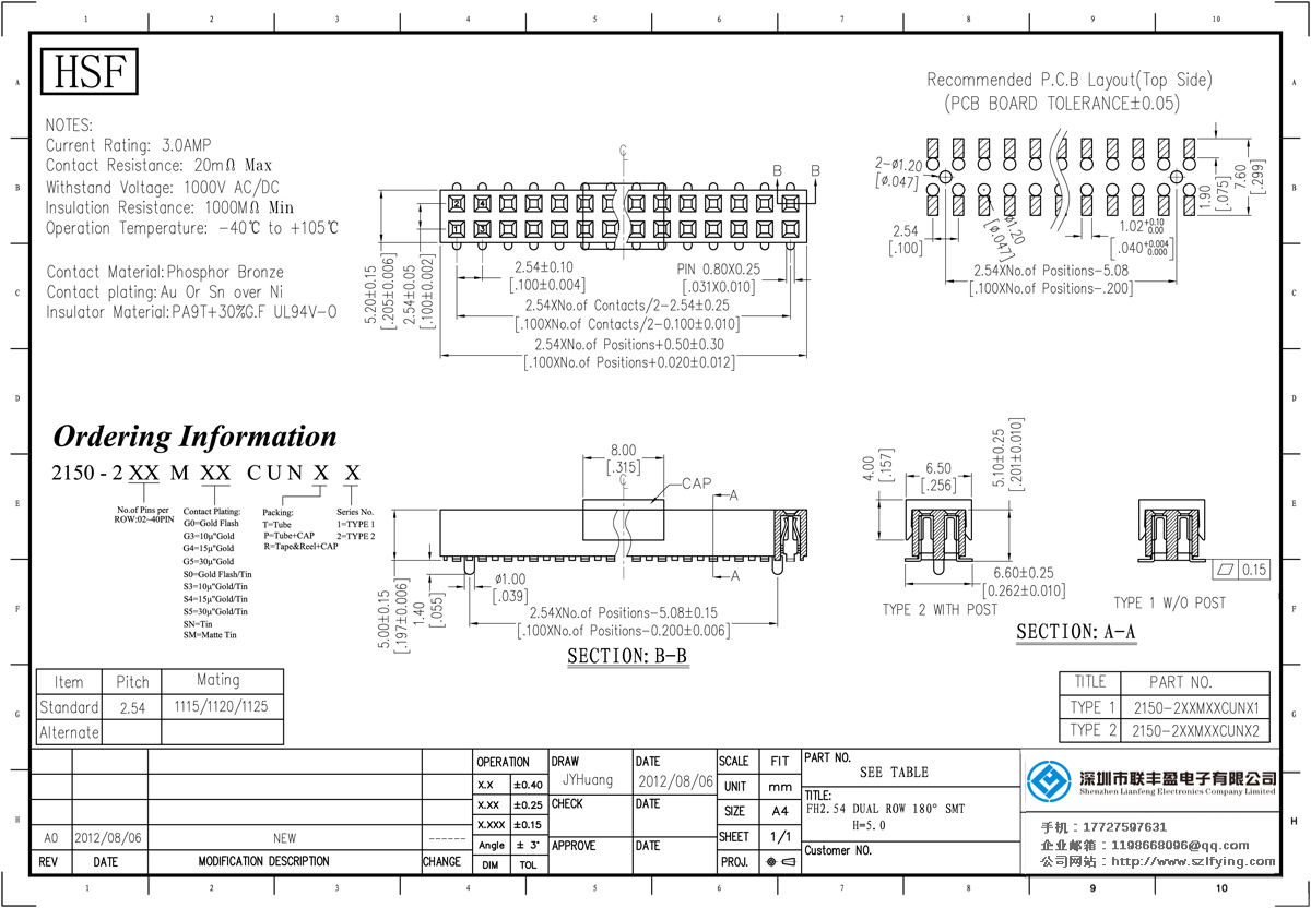 產(chǎn)品分類(lèi):排母連接器 產(chǎn)品規(guī)格:聯(lián)豐盈 2.54MM H=5.0MM 雙排 180 SMT 排母 直銷(xiāo) 產(chǎn)品介紹:額定電流:3.0amp電流電阻:20m最大絕緣電阻:1000mmin耐壓:1000V AC /分鐘工作溫度:40﹣℃+ 105℃接