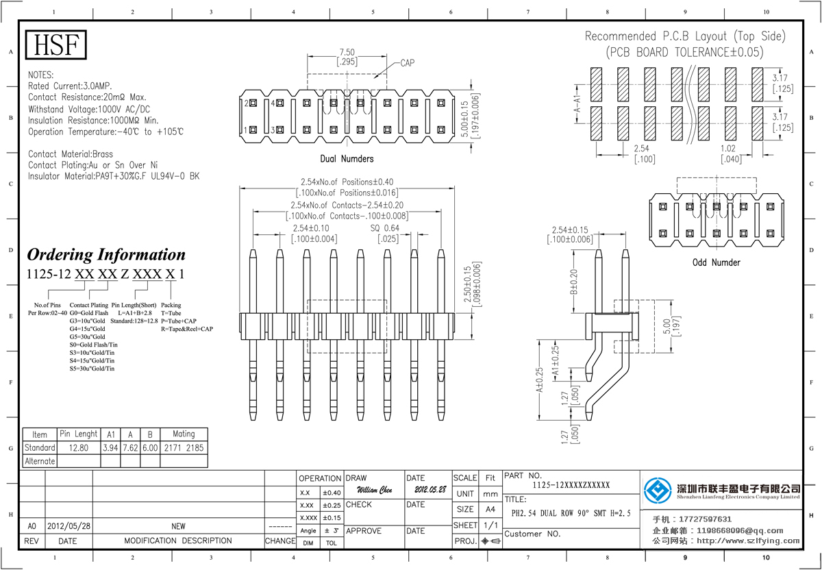 產品分類:排針連接器 產品規格:2.54MM 單層雙排 彎針 排針 聯豐盈 直銷 產品介紹:額定電流:3.0amp電流電阻:20m最大絕緣電阻:1000m民承受電壓:AC 500V /分鐘工作溫度:40﹣℃+ 105℃接