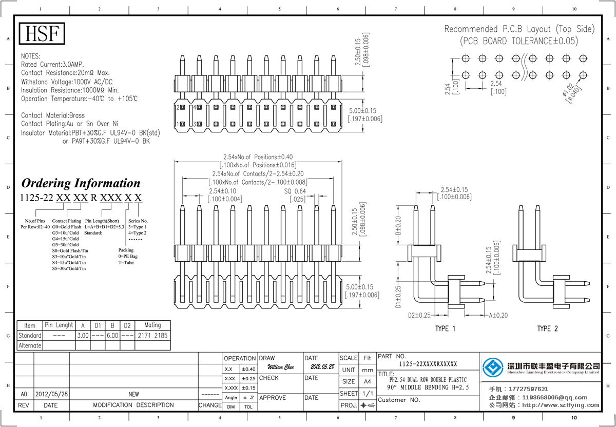 產(chǎn)品分類(lèi):排針連接器 產(chǎn)品規(guī)格: 雙層雙排 彎針 排針 2.54MM 產(chǎn)品介紹:額定電流:3.0amp電流電阻:20m最大絕緣電阻:1000m民承受電壓:AC 500V /分鐘工作溫度:40﹣℃+ 105℃接觸材料:黃