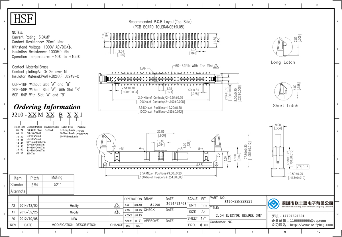 產品分類:簡易牛角連接器 產品型號:牛角 2.54 貼片 連接器 供應商 聯豐盈 技術參數:額定電流:3amp接觸電阻:2om最大承受電壓:500V的交流/直流絕緣電阻:1000m毫米的操作溫度:-