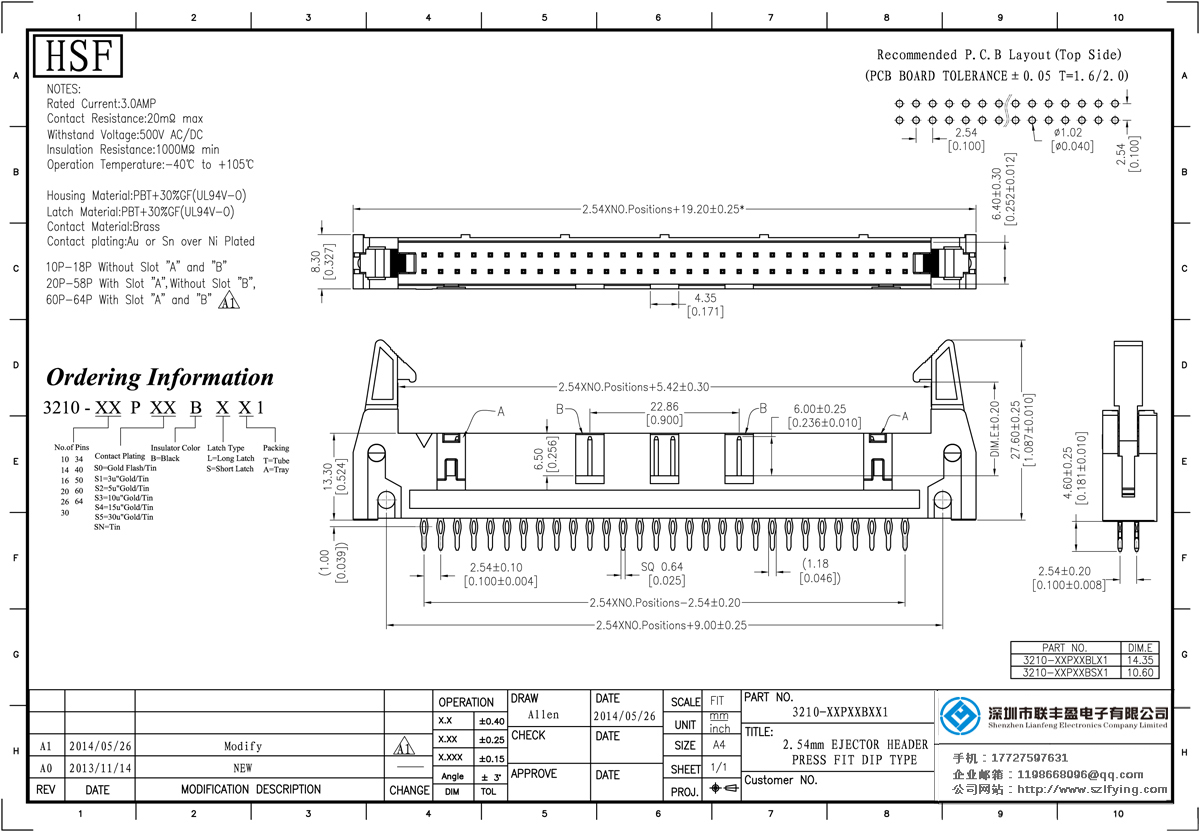 產(chǎn)品分類: 簡易牛角連接器 產(chǎn)品型號:2.54mm 壓接式 免焊式牛角 長/短耳扣 連接器 聯(lián)豐盈 技術參數(shù):額定電流:3amp接觸電阻:2om最大承受電壓:500V的交流/直流絕緣電阻:1000m毫米的