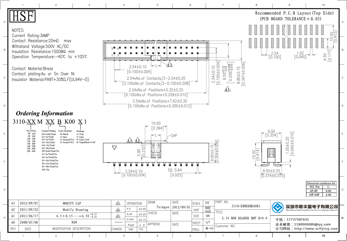 產品分類:簡易牛角連接器 產品型號: 聯豐盈 2.54MM 180SMT 滿PIN 簡牛 直銷 技術參數:額定電流:1.52amp電流電阻:20m最大承受電壓:500V的交流/直流絕緣電阻:1000分鐘操作溫度:40﹣℃